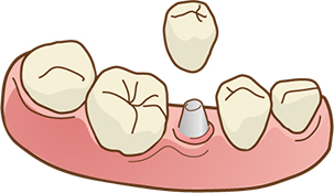 顎の骨に人工の根(フィクスチャー)を埋め込み、土台(アバットメント)に人工の歯(上部構造)を取り付け欠損を補います。